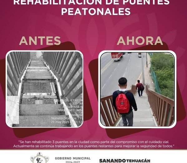 Tehuacán, Puebla.– Con el objetivo de garantizar la seguridad y el correcto tránsito peatonal, la Dirección de Obras Públicas del Ayuntamiento de Tehuacán lleva a cabo trabajos de rehabilitación y mantenimiento en diversos puentes peatonales de la ciudad. Como parte de esta estrategia, ya se ha intervenido el 95% de los puentes peatonales del municipio, […]