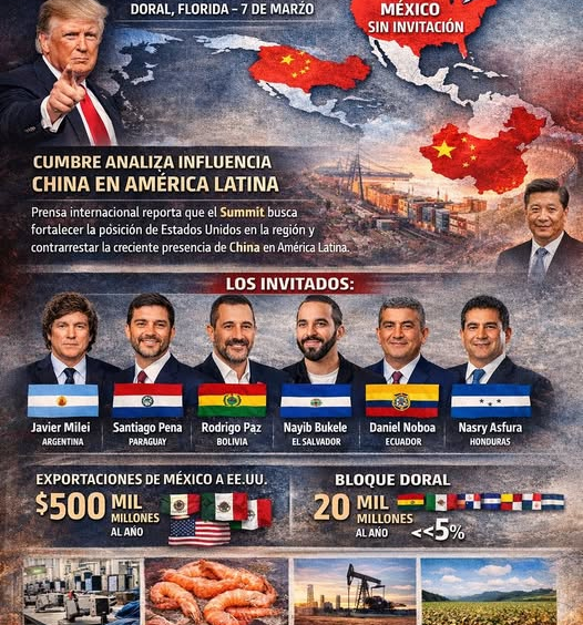 El 7 de marzo se celebrará en Doral, Florida un Summit convocado por Donald Trump. El encuentro busca coordinar posiciones con gobiernos latinoamericanos afines y fortalecer la presencia de Estados Unidos en la región en un contexto de creciente influencia de China en América Latina.