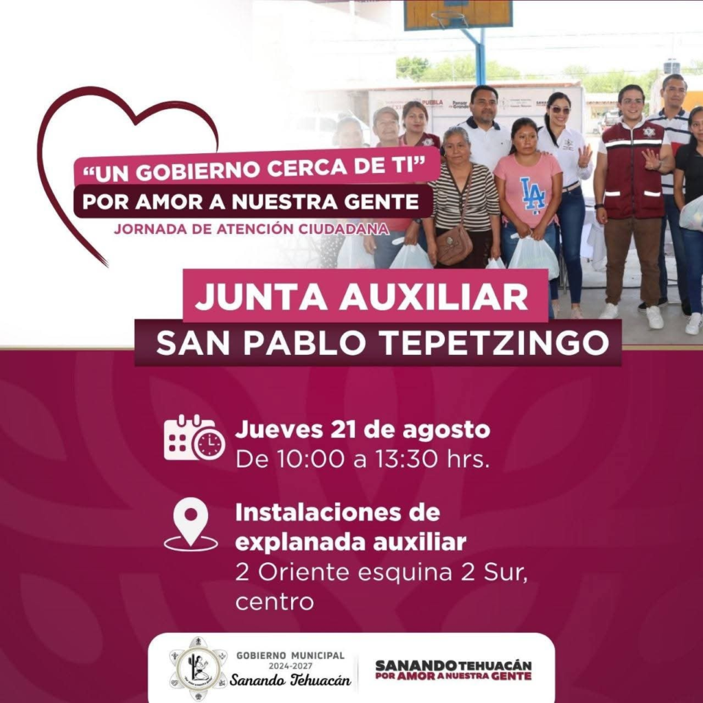 El Gobierno de Tehuacán encabezado por el Dr. Alejandro Barroso Chávez, se complace en invitar a la ciudadanía a la 𝗝𝗢𝗥𝗡𝗔𝗗𝗔 𝗗𝗘 𝗔𝗧𝗘𝗡𝗖𝗜Ó𝗡 𝗖𝗜𝗨𝗗𝗔𝗗𝗔𝗡𝗔: 𝗨𝗡 𝗚𝗢𝗕𝗜𝗘𝗥𝗡𝗢 𝗖𝗘𝗥𝗖𝗔 𝗗𝗘 𝗧𝗜.![]()